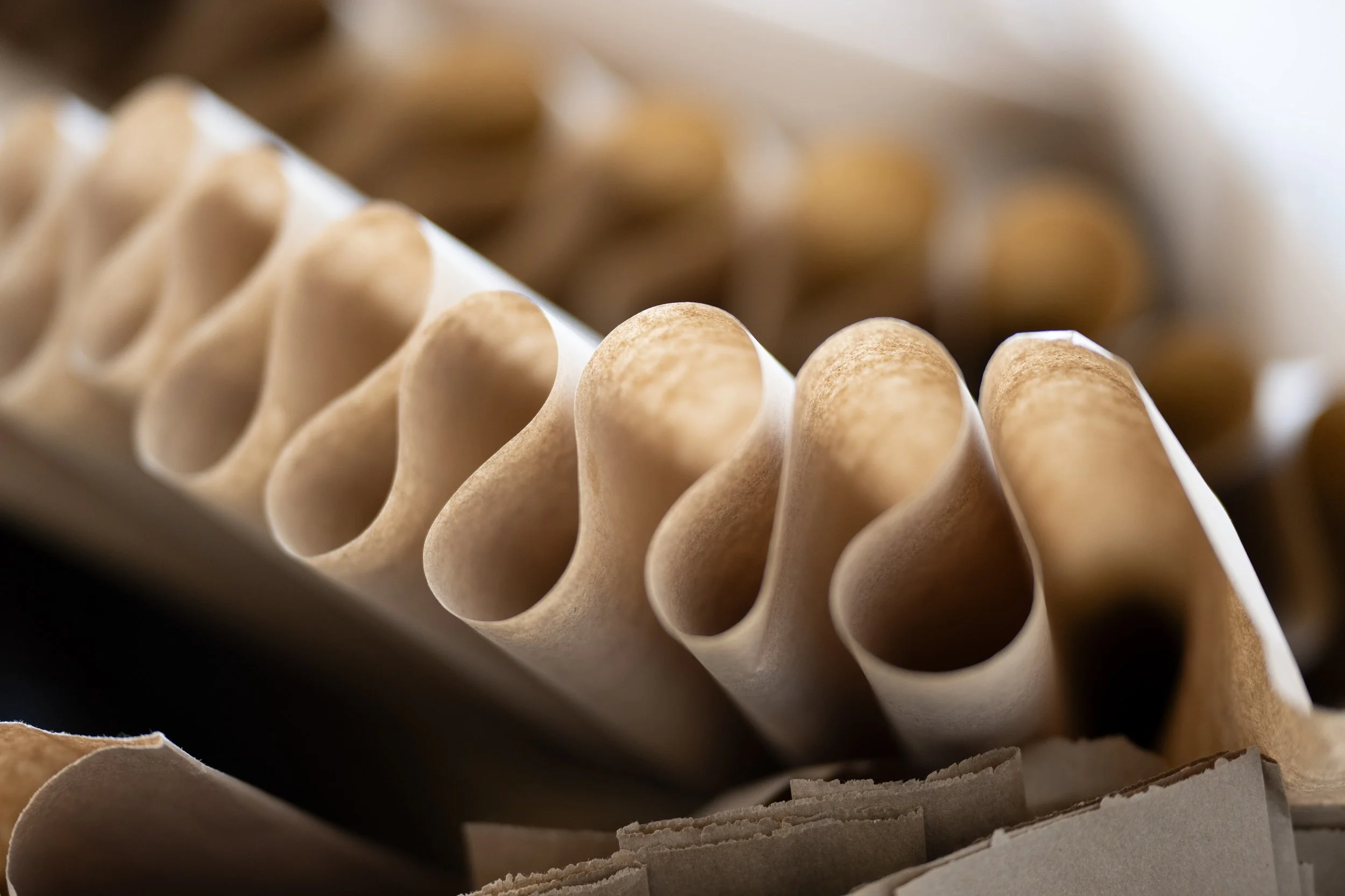 Inspired by his mentor, the late Tedd Robinson, he leaned into the ball gown/skirt as my initial pattern. Using pleating and chord making Ralph was able was able to construct a garment that used zero glue, tape, or anything other than the paper fiber’s itself. With mentorship of Hélène Day Fraser and Keith Doyle of the Material MattersLab, he was also able to get guidance in how to further problem solve the performative parts of the work - and their keen knowledge in construction and materiality.