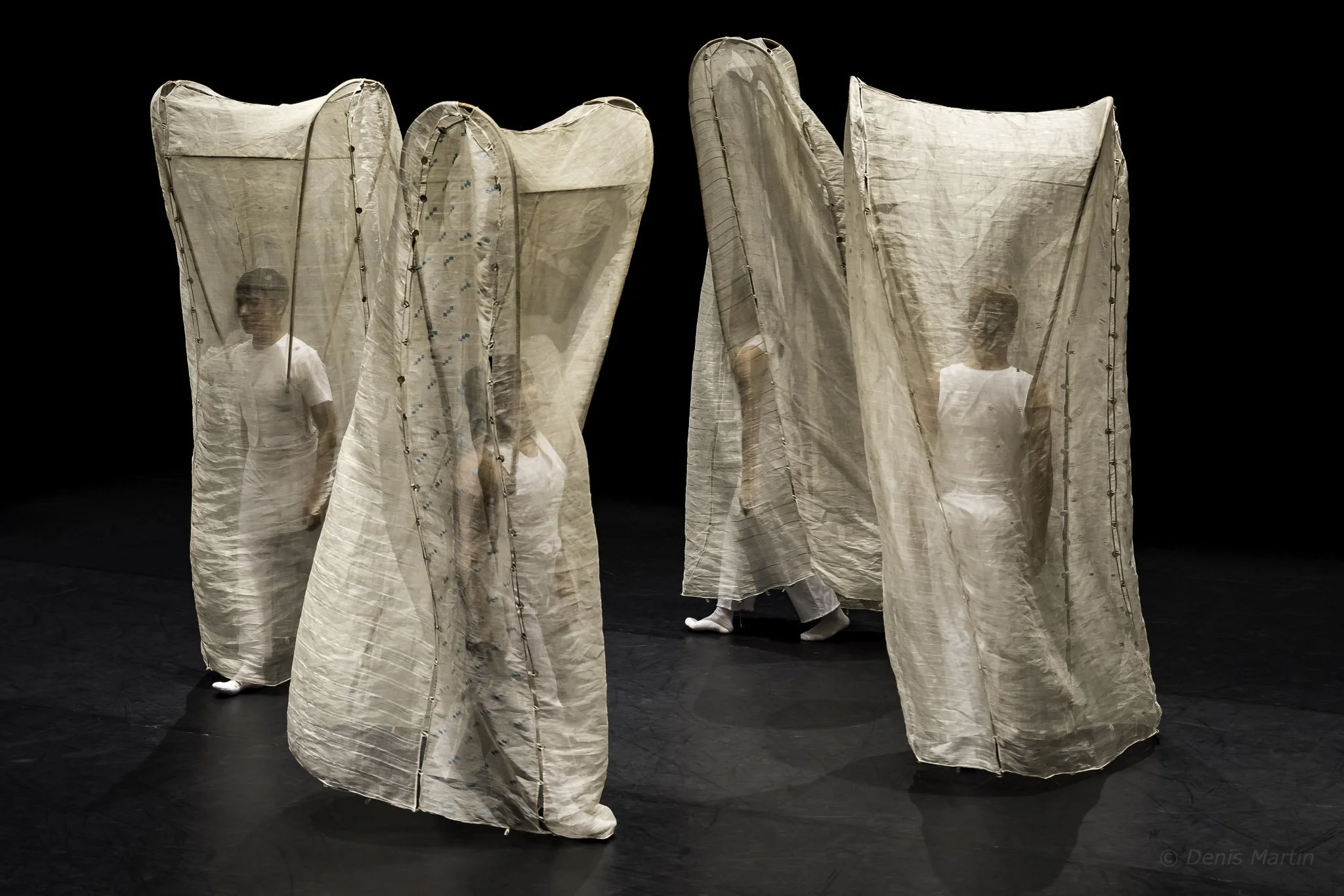In collaboration with long time costumer Robyn Jill Laxamana, the two created a modular garment they affectionately called the “Terno Towers”. Made out of bent bamboo, coconut shells and the piña textile - the costume piece transforms through out the work, becoming costume, backdrop and in an end tableau an image of the philippine islands.